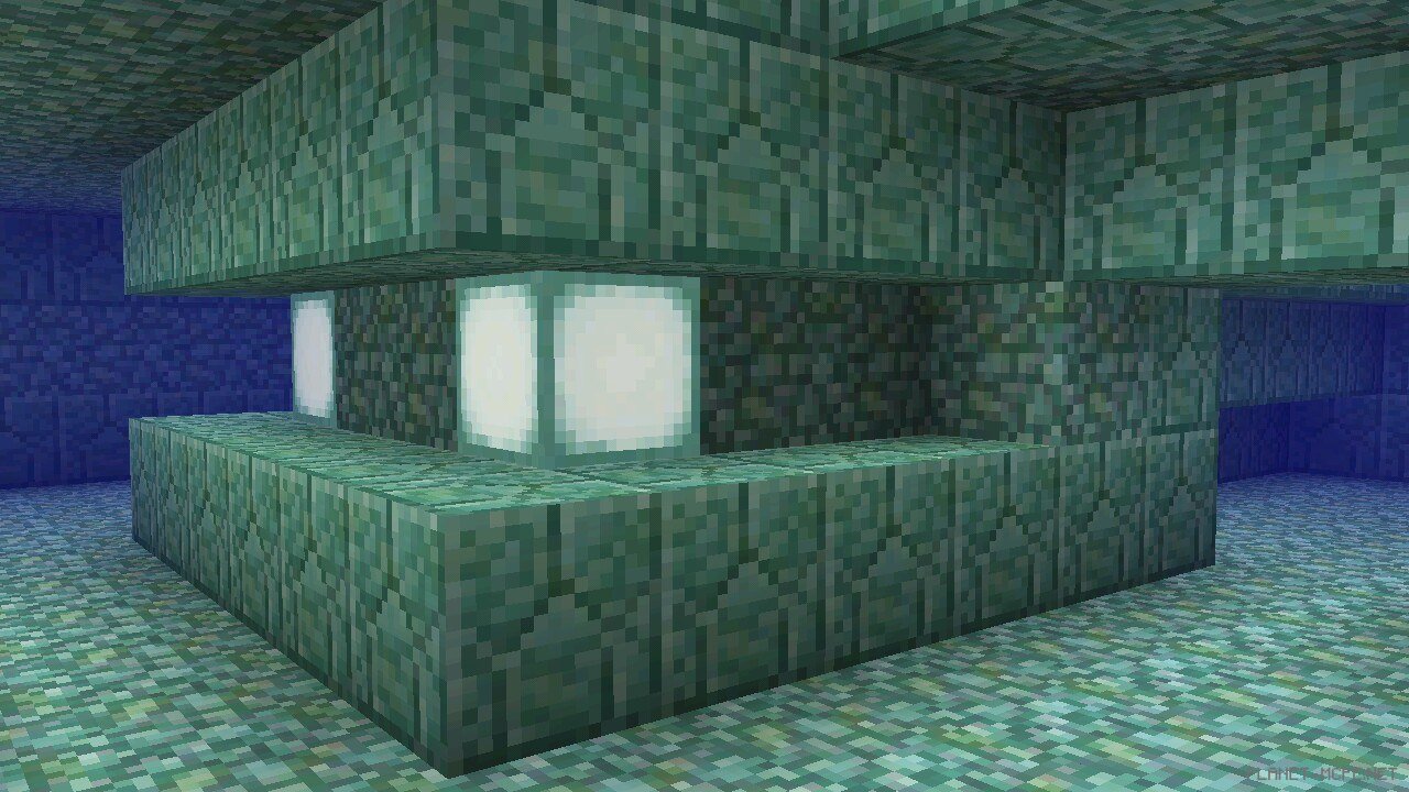 Подводная крепость состоит из: призмарин, тёмный призмарин, призмариновый кирпич, морской фонарь, золотой блок, мокрая губка.